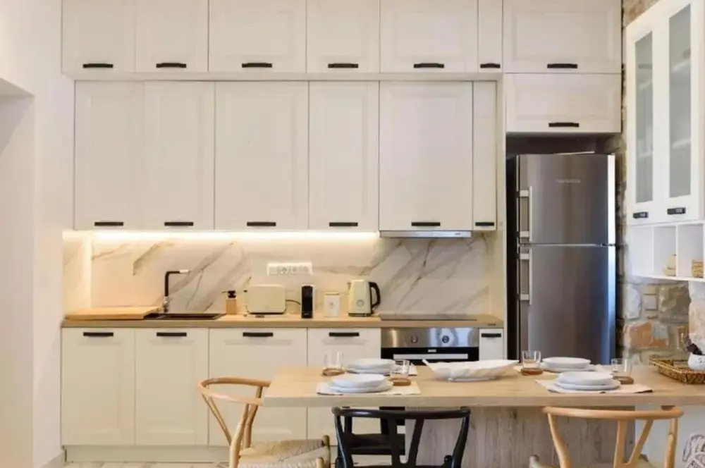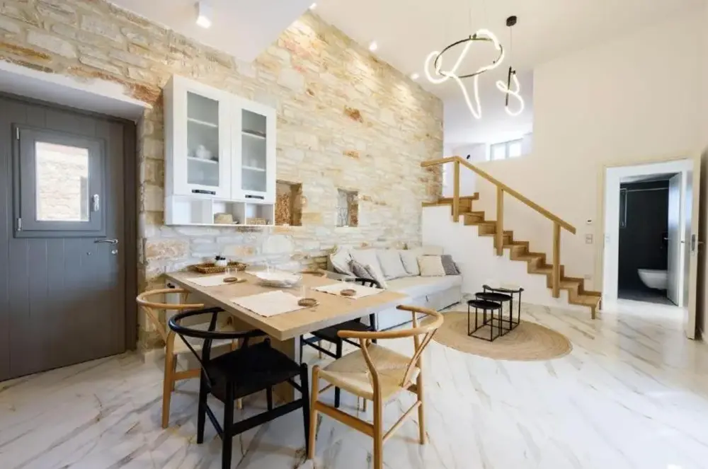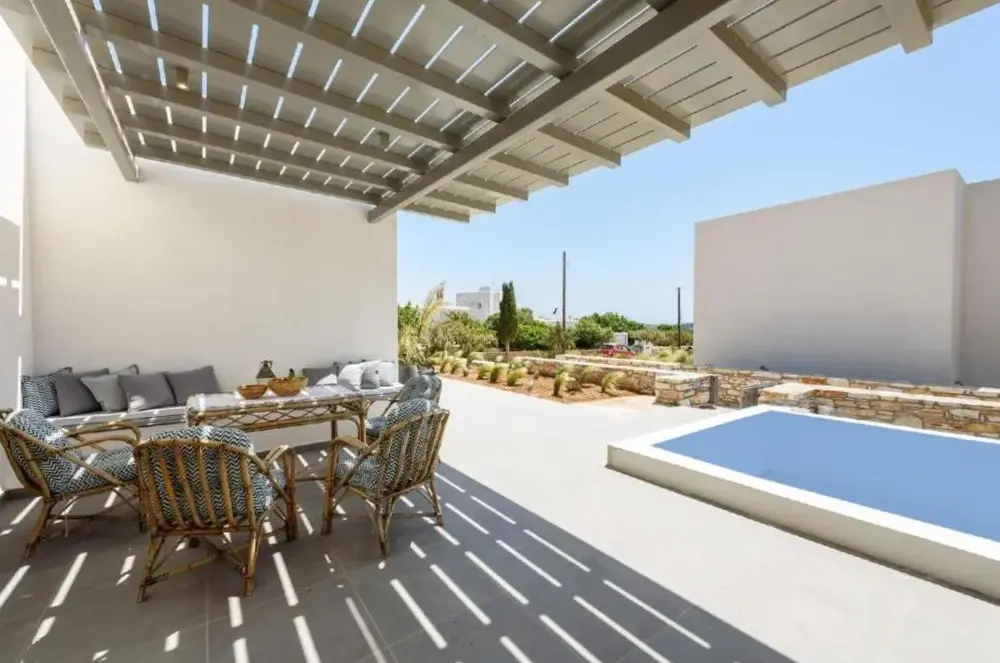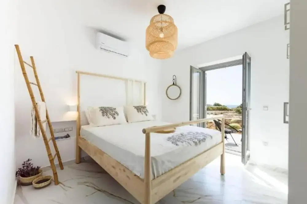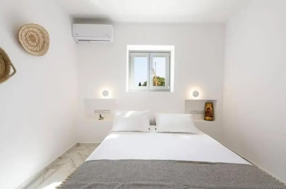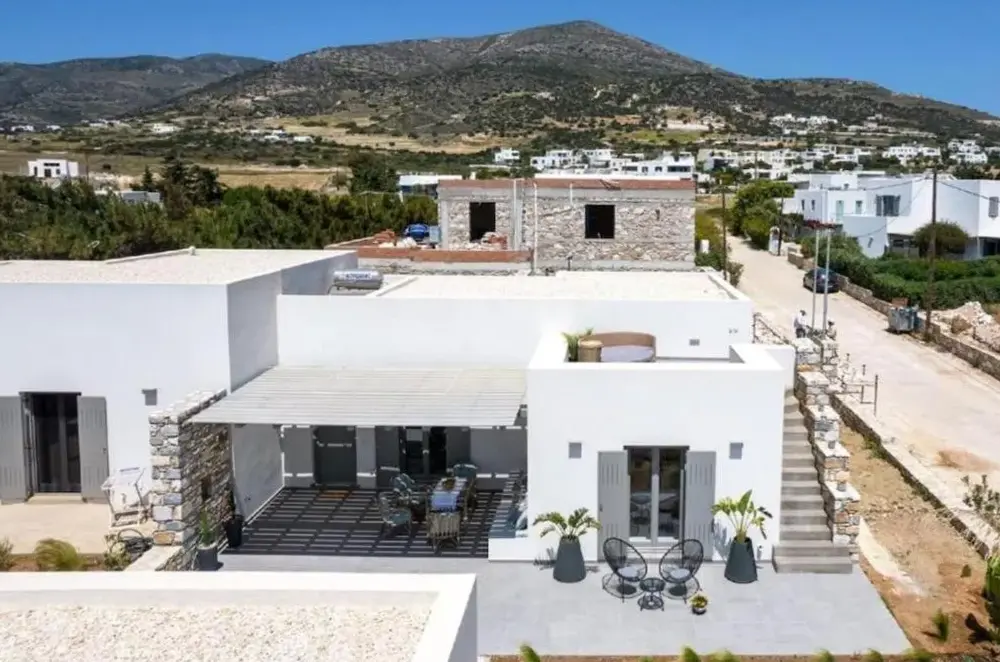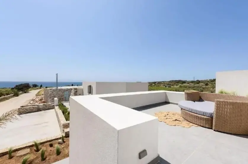 First of all the cleanliness of the appartment. Once you enter you can smell how clean it is. Everything is very new, the beds are verg comfortable, the kitchen has everything you might need. The bathroom is clean and new. I would highly recommend it for a group of family. The location is also close to very cool beaches and its only 25mns away from Naousa the main city center.